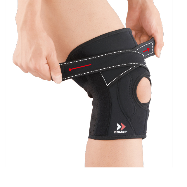 採用有伸縮性的大腿十字固定帶,提高膝關節上的壓迫力。可支持各種動作,還能減少偏移。