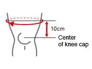 測量髕骨中心上方10厘米處的大腿周長。如果您的測量值介於兩種尺寸之間,請選擇較大尺寸。