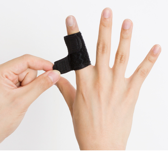 質地雖薄卻能牢牢固定。護具內側和外側都配有聚氨酯防滑膜的設計,既可抑制運動時護具出現偏移,也可防止球類受滑。伸入手指後、只需捲起固定帶就能完成簡單配戴。