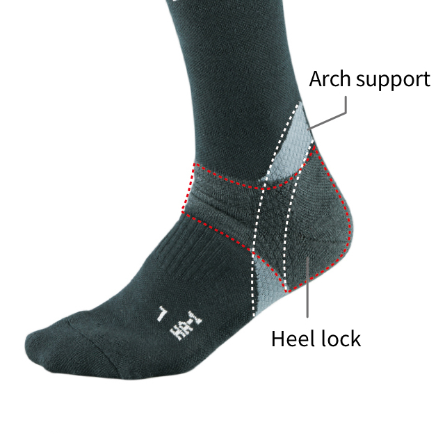 使用獨有的編織方法,抑制腳後跟的晃動,減輕足弓的負擔。長時間有效維持體力。