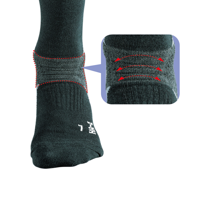 分段式加壓,保護小腿。更有獨有的編織方法,保護足弓和後跟。