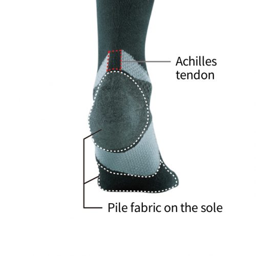 足底裏面採用翻毛材料,緩和著地和蹬踏時受到的衝擊 (足弓部分除外)。
