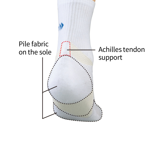 腳底使用絨毛材料以減少在著陸和踩踏過程中對腳的影響(足弓提升部件除外)。