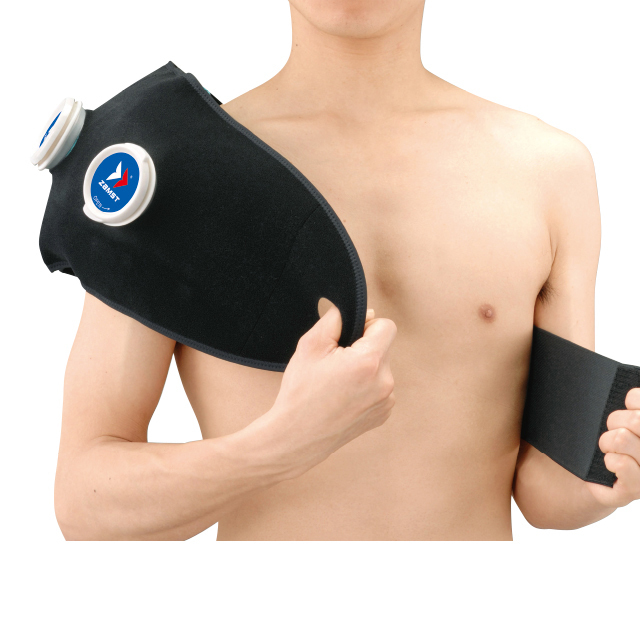 Elastic straps enable to adjust compression level and the position easily. The structure makes it easy to fit the body shape and provide accurate cooling and compression on the affected area.