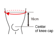 測量髕骨中心上方16厘米的大腿周長。如果您的測量值介於兩種尺寸之間,請選擇較大尺寸。