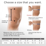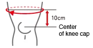 測量膝蓋骨中心上方 10 公分處的大腿周長。如果您的測量值介於兩個尺寸之間,請選擇較大尺寸。