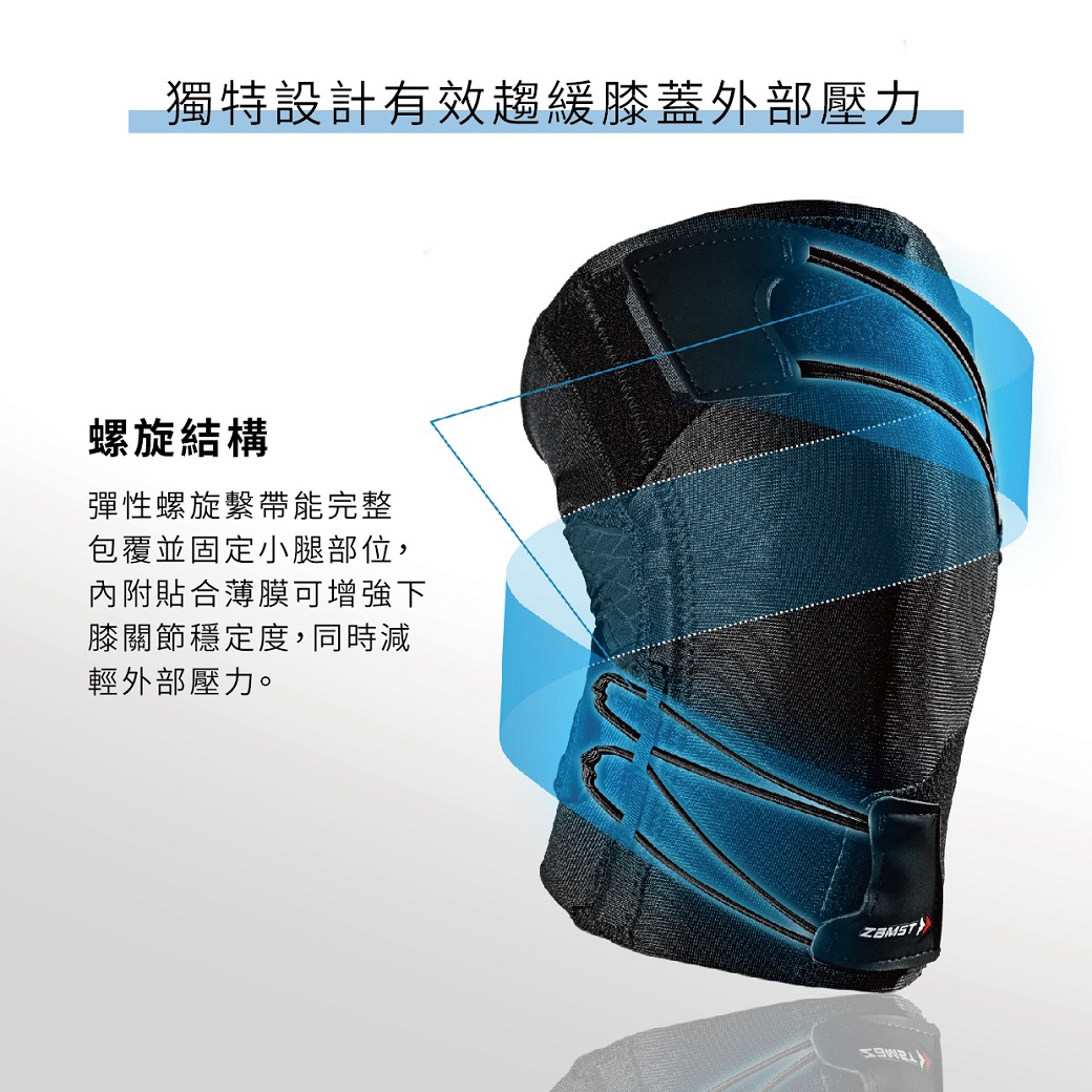 彈性螺旋繫帶能完整包覆並固定小腿部位,內附貼合薄膜可增強下膝關節穩定度,同時減輕外部壓力。
