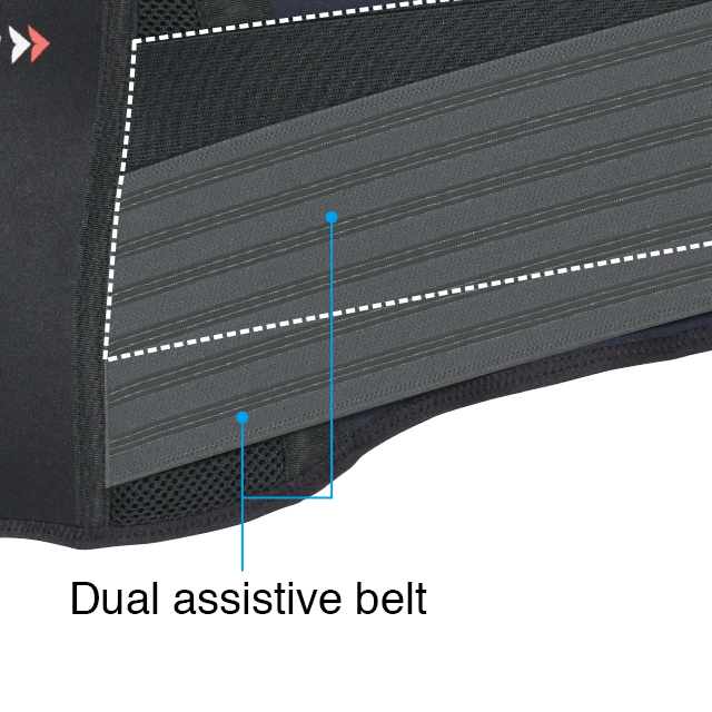 雙輔助帶增加腹壓。輔助帶與主體一體化,您可以輕鬆地使用產品,而不會在下背部造成負擔。